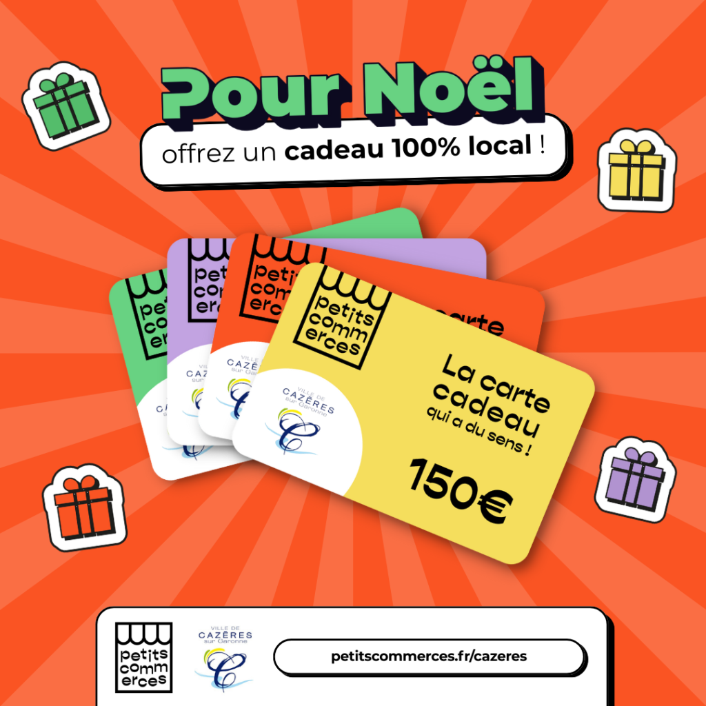 🔗 Pour commander vos cartes-cadeaux et pour toute info, rendez-vous sur : https://www.petitscommerces.fr/cazeres