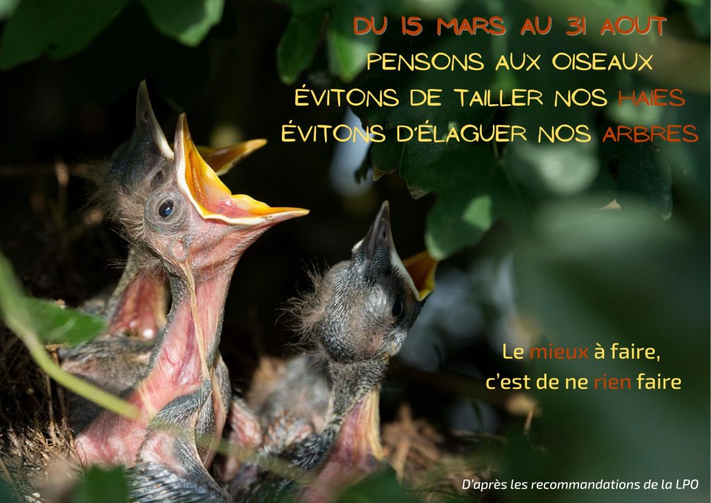 Après la pelouse, c’est le tour des haies ! Je pourrais vous parler du rôle incroyable des haies dans le paysage agricole, mais ce coup-ci ce sont plutôt les brises vues bucoliques de nos jardins et ce qu’elles abritent qui m’intéressent … Elles servent d’abri, de chemins, de garde-manger mais aussi de lieu de nidification pour plein d’oiseaux. Alors pendant cette période cruciale, on évite la taille !