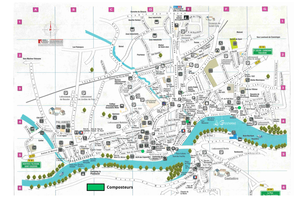 Vous trouverez les emplacements des composteurs sur le plan ci-dessous :