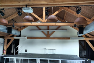 La salle Conférence est équipée pour 335 personnes debout et 166 personnes assises – elle est équipée de sanitaires, chauffage et ventilation
