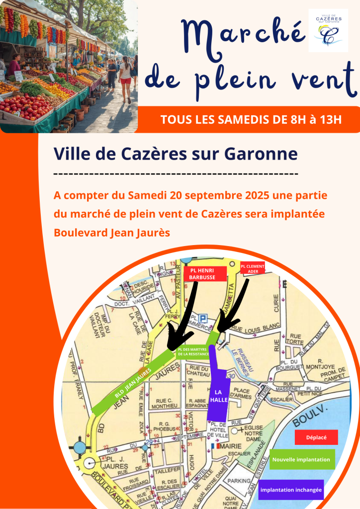 Plan de la nouvelle implantation du marché à partir du 20 septembre 2025
