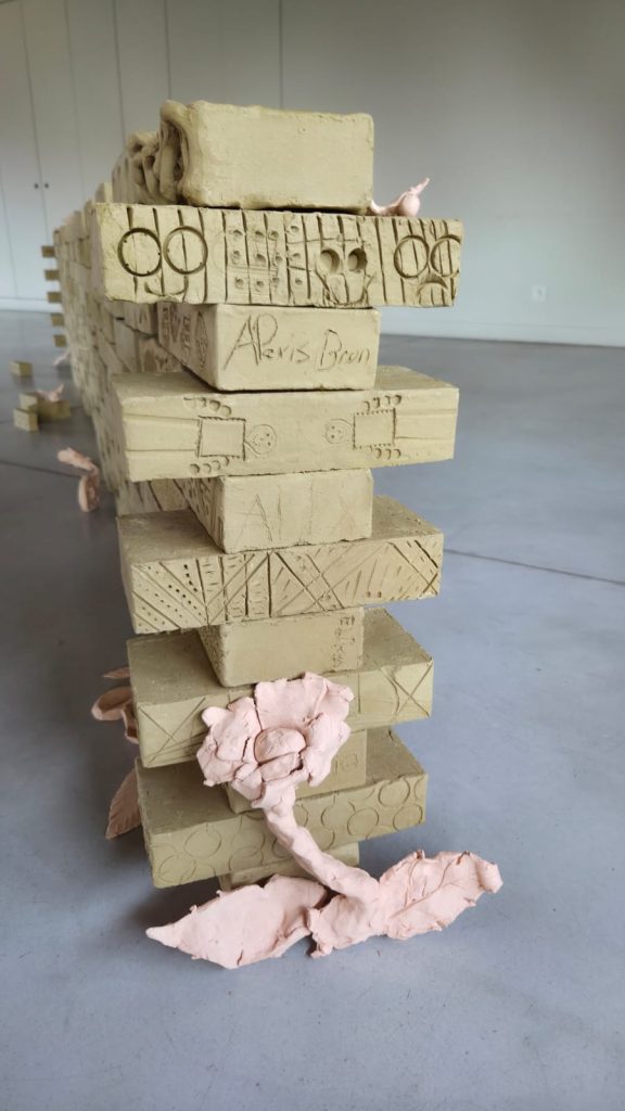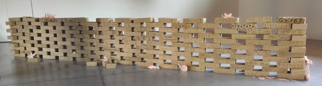 Les représentants des partenaires, les élus et le public ont pu découvrir le mur de briques confectionné par les élèves, ainsi que l’œuvre « mur-écran » de Jacques Bertoux, une œuvre issue du dispositif 1 % artistique.